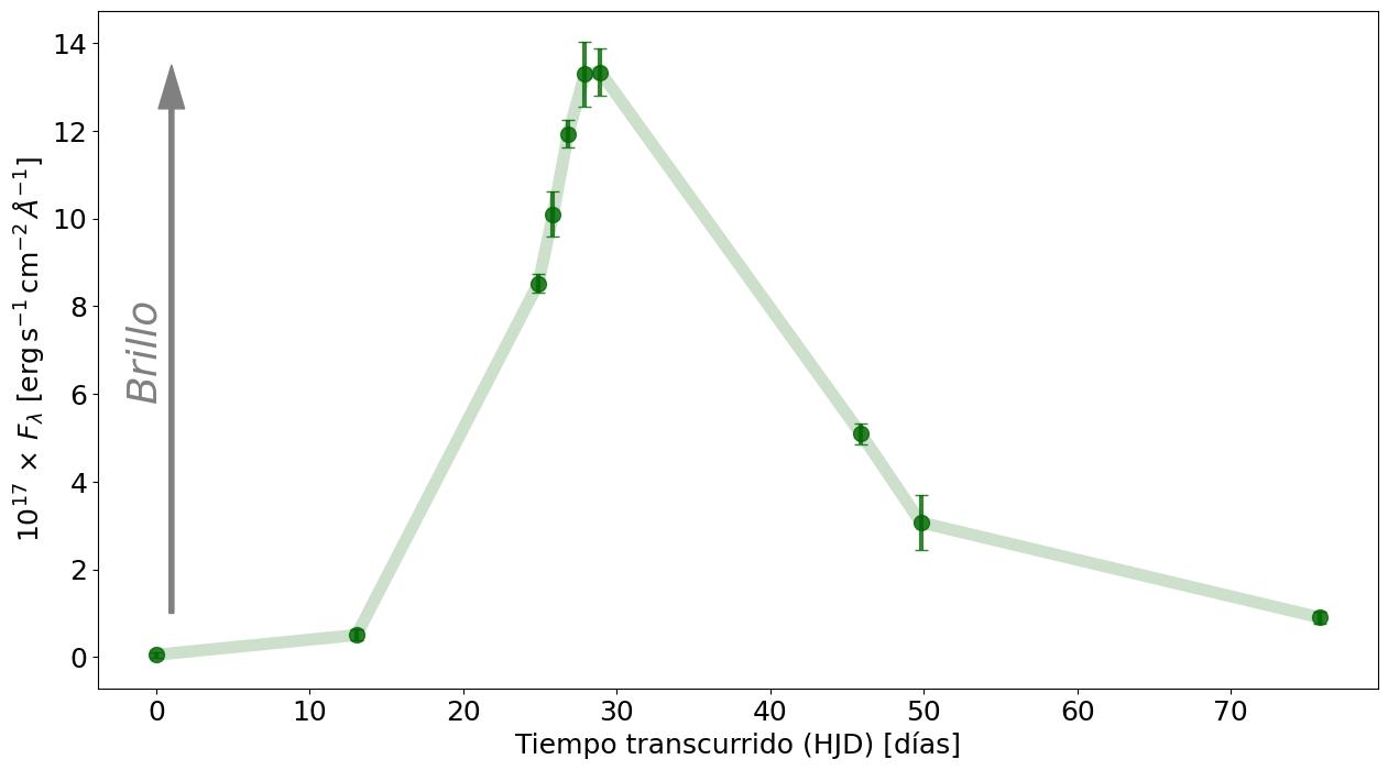Desde su descubrimiento, el telescopio JAST80 ha realizado un seguimiento de la evolución de brillo de JVAR21a con diferentes filtros ópticos, obteniendo así curvas de luz en las que se puede apreciar el aumento y disminución del brillo con el paso de las semanas. Este análisis es relevante ya que desde otros observatorios no se han publicado observaciones de espectros de este objeto, por lo que los de J-VAR son los únicos disponibles para poder clasificar esta fuente, que ya no volverá a ser visible.