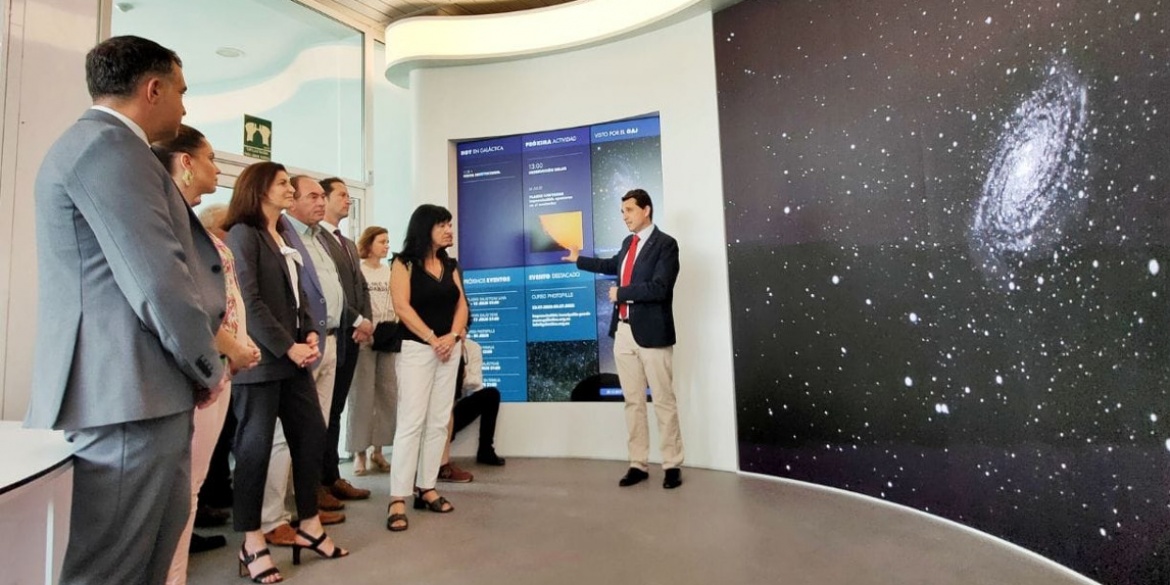 La secretaria general de Investigación del Ministerio de Ciencia y vicepresidenta del Centro de Estudios de Física del Cosmos de Aragón (CEFCA), Raquel Yotti, la consejera de Ciencia, Universidad y Sociedad del Conocimiento y Presidenta del CEFCA, Maru Díaz, el director del CEFCA, Javier Cenarro, y los directores generales de Investigación y Turismo del Gobierno de Aragón, Ramón Guirado y Gloria Pérez, han visitado Galáctica para conocer las novedades instaladas y las diversas experiencias programadas para este verano.